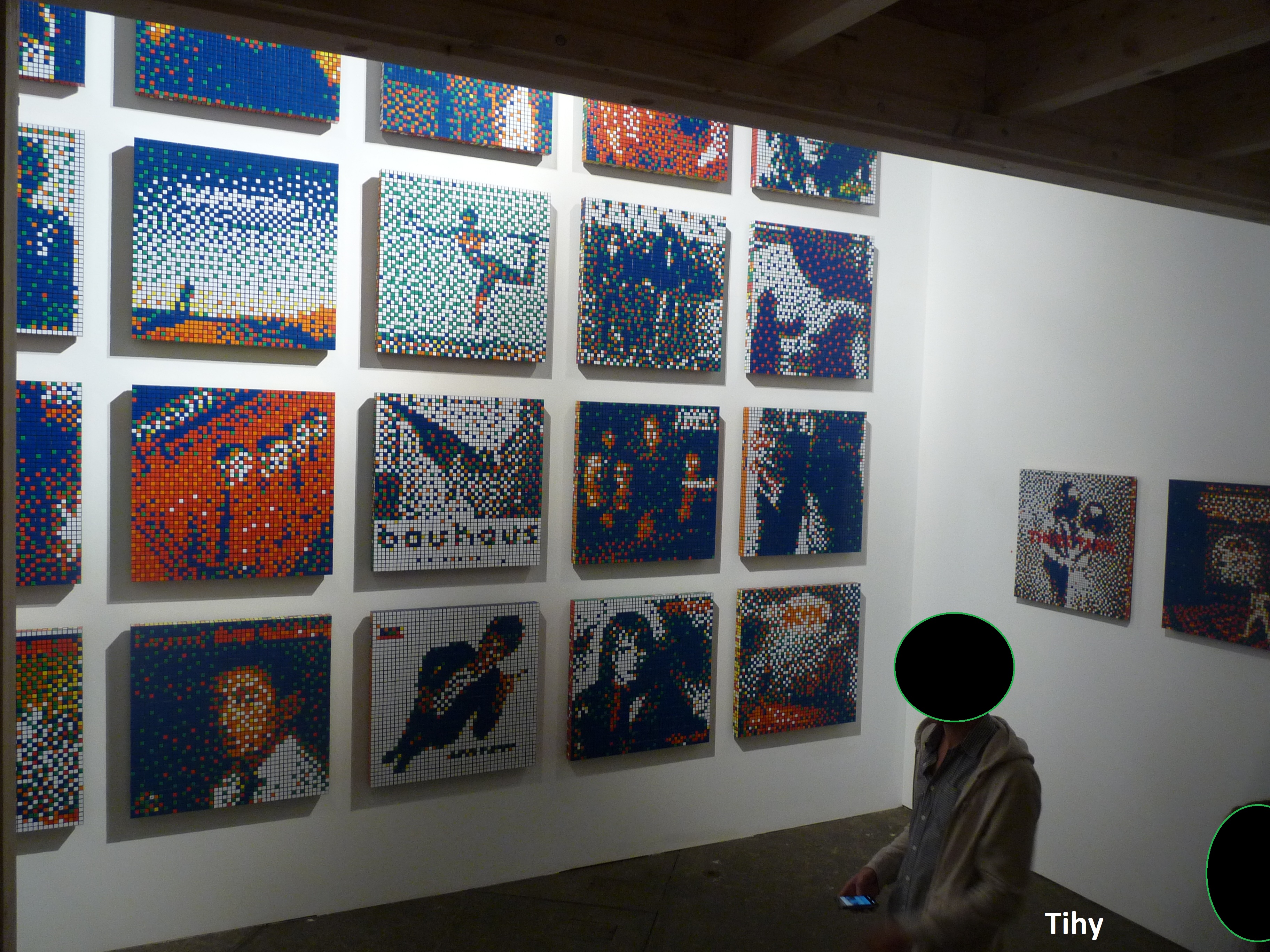 Les mosaïques sont d’abord travaillées en atelier, puis collées où bon leur semble. Et pour encore plus d’originalité, elles sont parfois réalisées avec des RubikCubes !