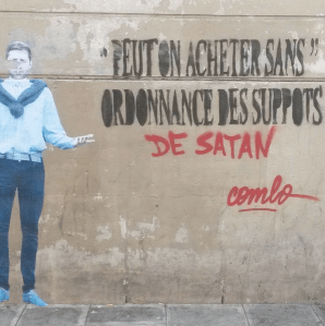 Visiblement inspiré par l’actualité, Combo aime associer un collage à un message fort. En témoigne l’une de ses dernières oeuvres, où l’on y voit écrit « Je n’ai pas traversé la Méditerranée pour convertir l’Europe à ma religion ».